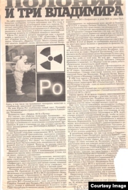– Вы писали статью "Полоний и три Владимира" в "Новом Петербурге" в 2006 году (имеются в виду Владимир Смирнов, Владимир Барсуков, Владимир Путин).