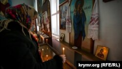 «Я молилась за мир, за то, чтобы перестали погибать наши мальчики, – сквозь слезы рассказывает пожилая женщина. – Я в церковь не часто хожу, только на Пасху и Рождество. В этом храме только второй раз. Раньше ходила в собор Петра и Павла (храм Московского патриархата в Симферополе – Прим. ред.), но там совсем другая атмосфера – люди агрессивные, толкаются, и все направлено на то, чтобы прихожане побольше денег там оставили. Здесь как-то уютно, по-домашнему».