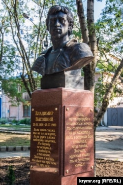 25 июня 2014 года, уже после оккупации Крыма, в 34 годовщину смерти поэта, местные власти привезли из Краснодара не пригодившийся там бюст Высоцкого и за неделю установили и открыли единственный в Крыму памятник поэту в сквере на берегу Салгира. Бронзовый бюст Высоцкого подарили Крыму организаторы специального проекта «Аллея российской славы», в ходе которого по всему миру установлено более 800 бюстов и памятников знаменитым гражданам России.
