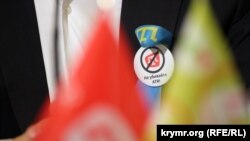 Рядом с ней стоит девушка, которой на вид 17-18 лет, на ее глазах слезы. Она не желает верить в то, что с 1 апреля телеканалы ATR, Lale, радиостанции «Мейдан» и «Лидер» перестанут вещать.