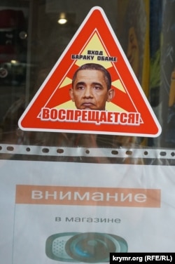 Сейчас прямо на пороге меня встретил дешевый «прикол» – портрет-наклейка американского президента Барака Обамы на входной двери с «запретом» ему посещать «Честь имею».
