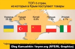 Помимо Украины, среди крупнейших внешнеторговых партнеров Крыма числятся страны СНГ и дальнего зарубежья.