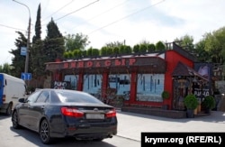 Магазин в поселке Пушкино, перед Партенитом, упомянутый в замечательном клипе «Ундервуда» «Платье в горошек». Раньше значительная часть вина и сыров тут были европейские, сейчас – не знаю. Не успел попросить водителя тормознуть, потому проскочили на скорости. Нужно будет как-нибудь заглянуть, поинтересоваться, как проходит импортозамещение.
