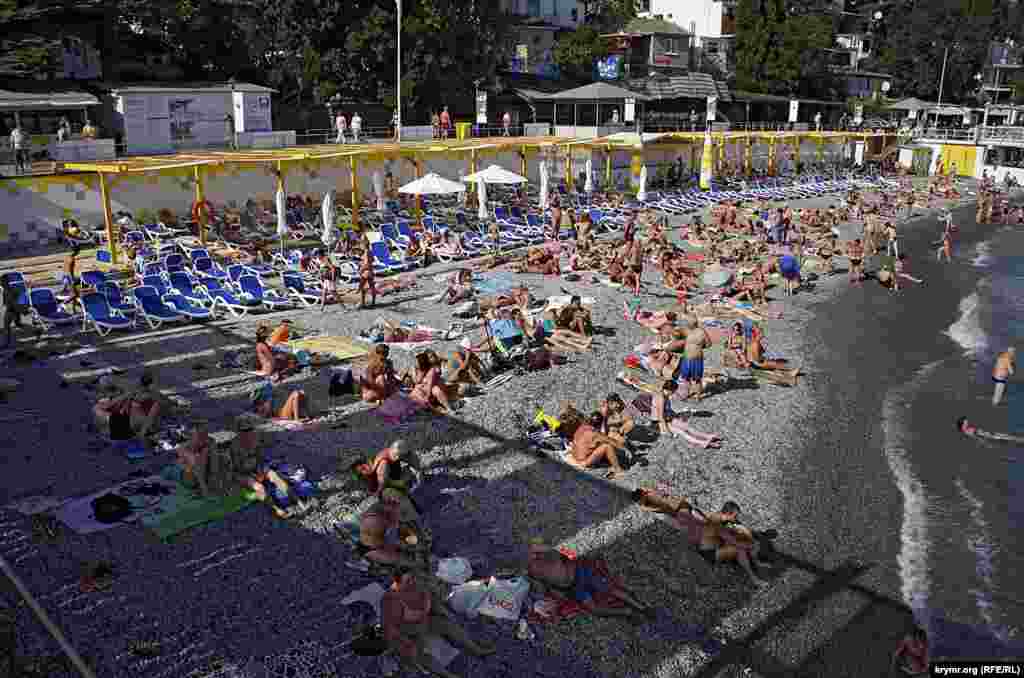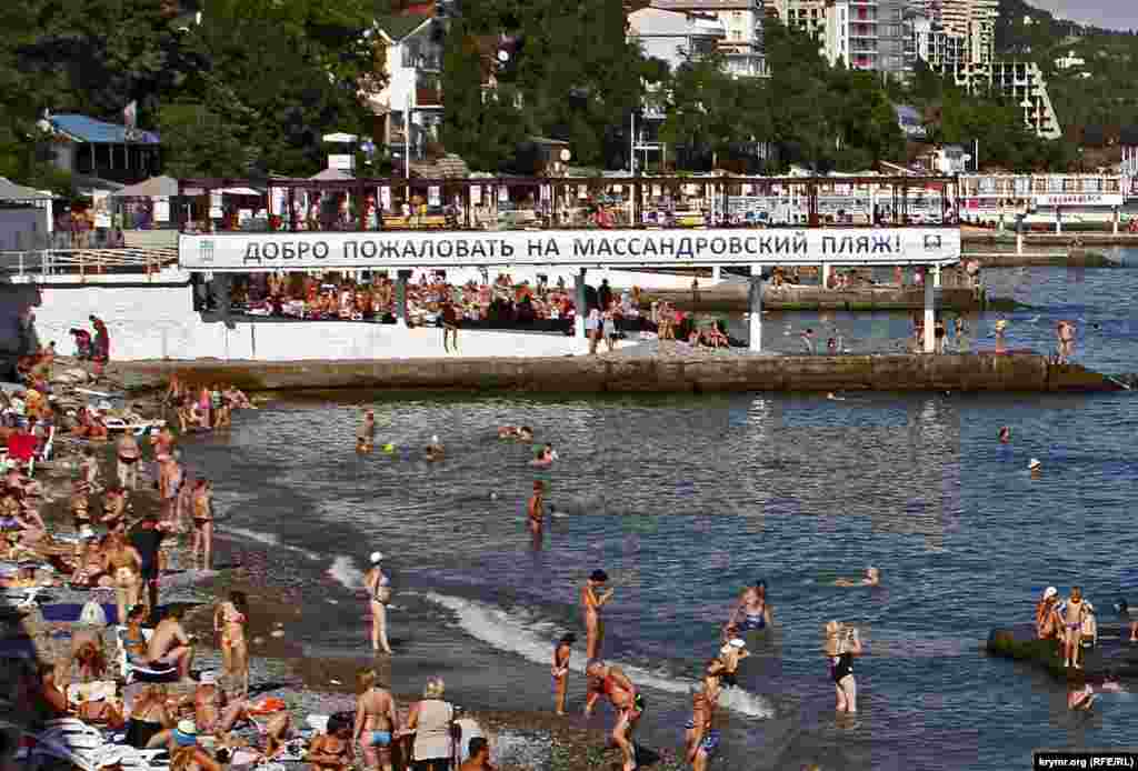 Массандровский пляж издавна использовался в качестве этакого термометра, который доставали из-под мышки курортного сезона при неясном диагнозе. Иногда пациент метался в горячке, иногда его знобило, но сейчас, если продолжать аналогию, «пациент скорее жив, чем мертв». Жизнь, которой сегодня живет Массандровский пляж, я бы назвал словом «прострация». Вроде все хорошо, есть люди, погода замечательная, море спокойное, давки нет – но если не смотреть на календарь, то сказать что сейчас август, невозможно.
