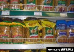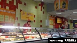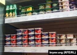 Колбаса, в основном, местная. Маркировка «Дружба народов», что видна на колбасе в витрине. Был крымский совхоз, теперь это мультирегиональная торговая марка, входит в агрохолдинг «Мироновский хлебопродукт». Мясокомбинат «Скворцово», снабжающий колбасными изделиями весь Крым, вообще принадлежит нынешнему министру сельского хозяйства Крыма в правительстве Аксенова Виталию Полищуку. Так что с колбасой проблем нет. На привозном или на своем мясе работают мясокомбинаты – не знаю, но колбас крымских брендов, причем довольно качественных, хватает. Ассортимент разбавлен, как видите, краснодарской продукцией, цены сопоставимы.