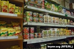 Овощи здесь явно украинские – и по словам продавцов, и по простой логике. Крупные торговые сети договора о поставке продуктов с мелкими производителями не заключают – ведь нужна гарантированная, бесперебойная да еще и круглогодичная доставка продукции в сеть. А откуда в Крыму крупные поставщики овощей и фруктов? Когда Крым в зоне рискованного земледелия и заморозки каждые два года убивают урожай фруктов, а картошка тут растет только на крестьянских подворьях? Ну, разве что лук местные корейцы на севере Крыма выращивали в промышленных масштабах. Но теперь, когда воды в Северо-Крымском канале нет, и корейцы не помогут.