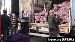 Лук, в основном, крымский, хотя есть и российский. Лука много, оптовая цена – 15 рублей за килограмм (5-6 гривен).