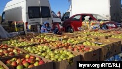 Яблоки на рынке нынче исключительно крымские, благо, урожайный год. Обычно значительная часть яблок привозилась с материковой Украины.