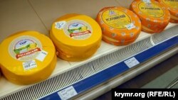 Эволюция крымской действительности более наглядно. Слева сыр «Российский» украинский, справа – «Российский» российский, то есть «Молочная долина» – это украинский бренд, «Добряна», соответственно, российский. Стоимость украинского сыра – 348 рублей за килограмм (125 гривен), российского – 579 рублей килограмм (208 гривен). За качество украинского ручаюсь, российский, если честно, не пробовал. Пока есть в продаже украинский сыр, на российский меня почему-то не тянет.