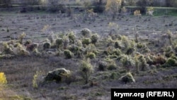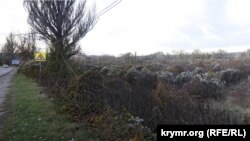 Вот остатки большого сада. Земля распаевана, видны бетонные столбики свежих заборов с натянутой проволокой. Но, очевидно, хозяева или пытаются продать надел, или же ждут лучших времен для хозяйствования – других объяснений того, почему простаивает плодородная земля, мне в голову не приходит. Окрестности сел Новопавловка и Малиновка, Бахчисарайский район, то есть долина реки Альмы.