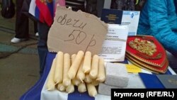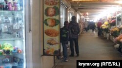 Итак, вчера под вечер сходил на Центральный рынок. Купил у пожилой крымской татарки неожиданно дешевые помидоры (по 70 рублей килограмм, это где-то 25 гривен), яблоки (золотистый нижнегорский Гольден, по такой же, как у помидоров, цене) и зелени (15 рублей пучок, чуть больше 5 гривен, если перевести), проведал сырный лабаз (украинские сыры еще есть, цена в среднем 450 – 500 рублей, то есть 140 – 180 гривен за килограмм, пока не подорожали) и пошел домой.