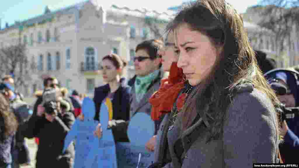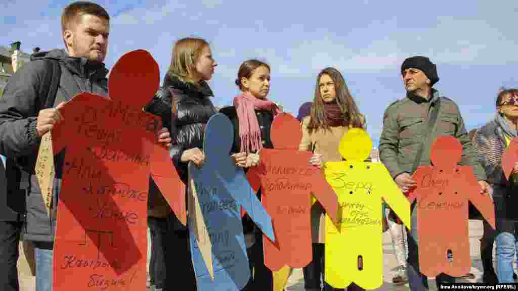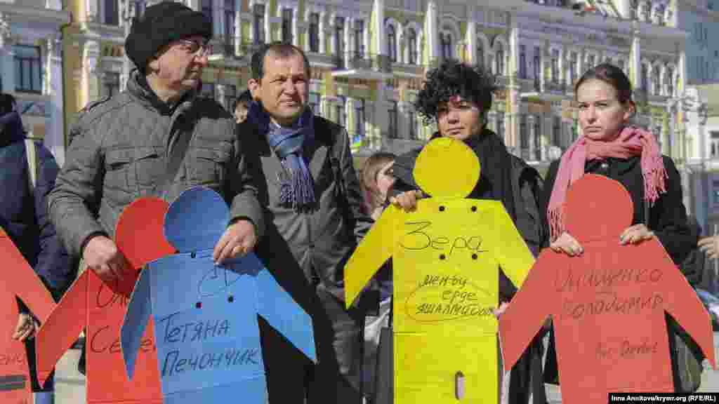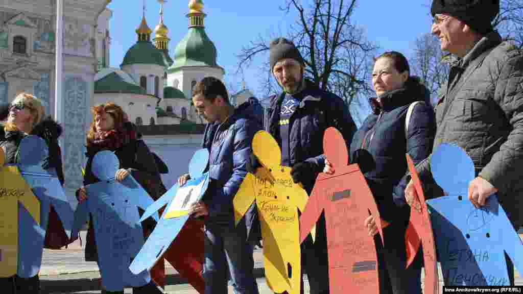 16 марта общественные деятели, крымчане, активисты, журналисты, правозащитники собрались на Софийской площади Киева, чтобы почтить память Решата Аметова, который стал первой жертвой российской аннексии Крыма. Участники акции держали в руках разноцветных картонных человечков, на которых были написаны имена всех тех, кто не смог присоединиться к ним сегодня, но поддержал акцию и почтил память крымскотатарского активиста. Два года назад Решат Аметов вышел в центр Симферополя с одиночным пикетом и выступил против действий российской власти в Крыму. Его похитили 3 марта 2014 года. 15 марта тело Аметова со следами пыток было найдено в лесу Белогорского района Крыма.