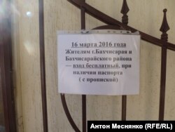 У сотрудниц кассы в этот день работы совсем немного. В честь второй годовщины "референдума" администрация рекреационного объекта сделала вход бесплатным для всех жителей Бахчисарая. Чтобы попасть внутрь без билета, достаточно у проходной предъявить паспорт с местной пропиской. Еще одним подарком горожанам от владельца парка Виктора Жиленко стала презентация нового экспоната – памятника "вежливым людям".
