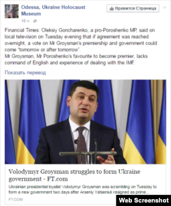 «Financial Times: Алексей Гончаренко, народный депутат из лагеря Порошенко, заявил на местном телевидении во вторник вечером, что если договоренности достигнут в течение ночи, голосование по премьерству Владимира Гройсмана и правительству может произойти «завтра или послезавтра». Владимир Гройсман, фаворит Петра Порошенко на должность премьера, не знает английского и не имеет опыта работы с МВФ»