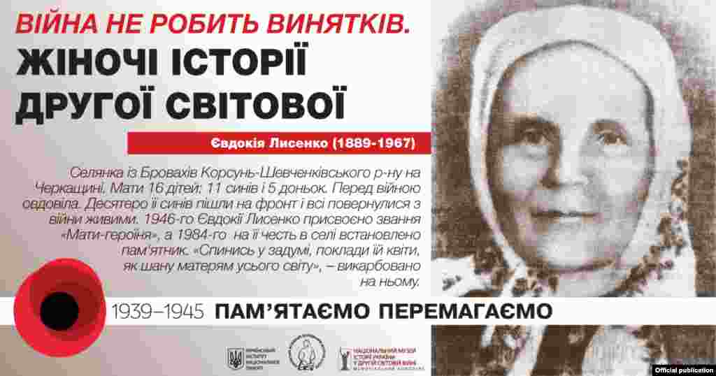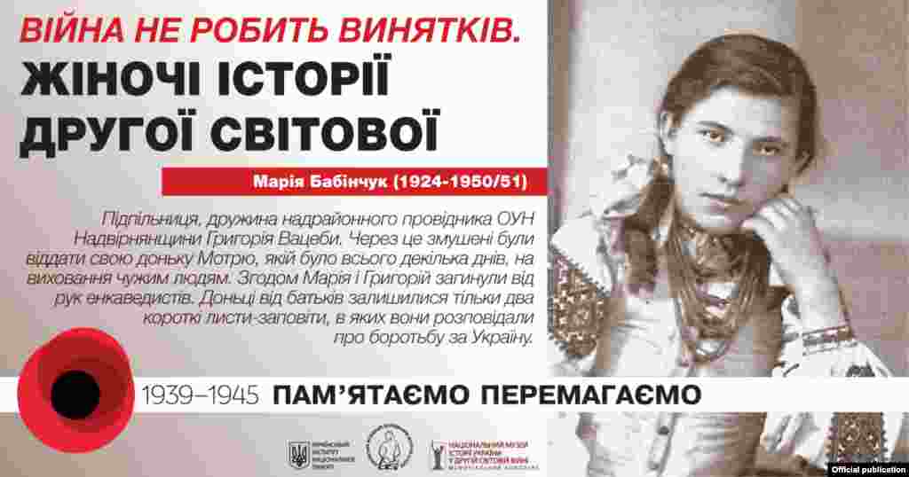 Цьогоріч День пам’яті і примирення, який відзначають 8 травня, збігається із Днем матері. Тож серед проектів Українського інституту національної пам’яті – виставка, присвячена історіям жінок Другової світової.