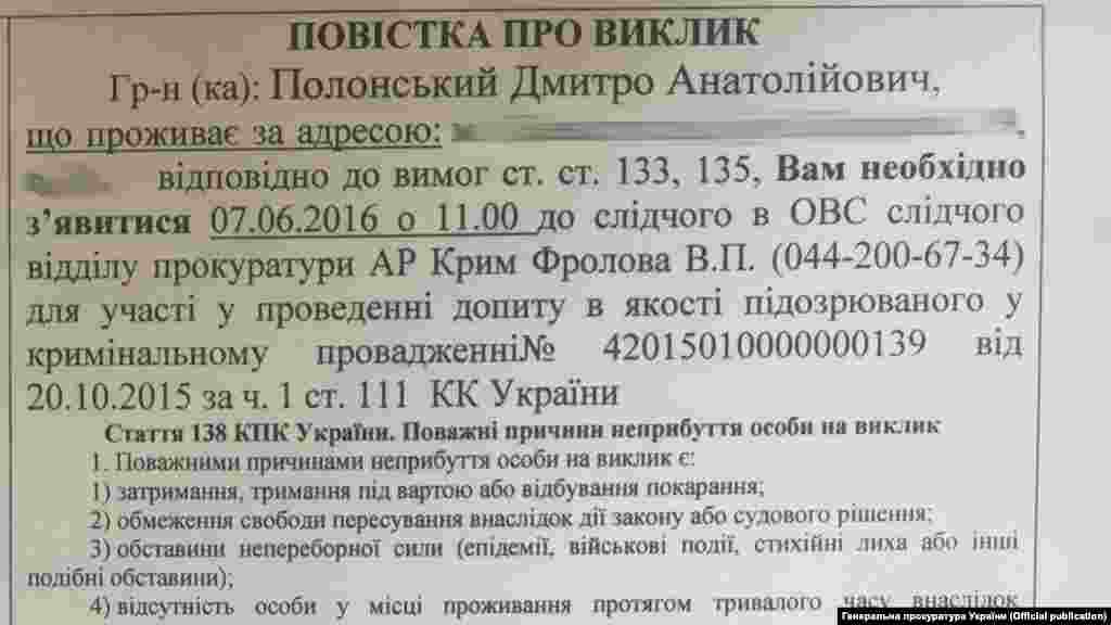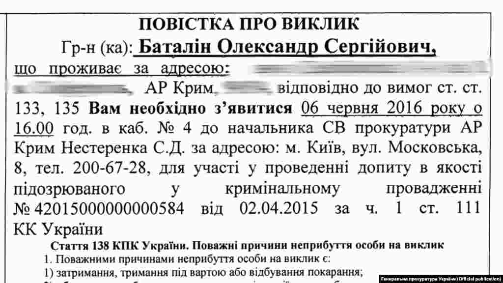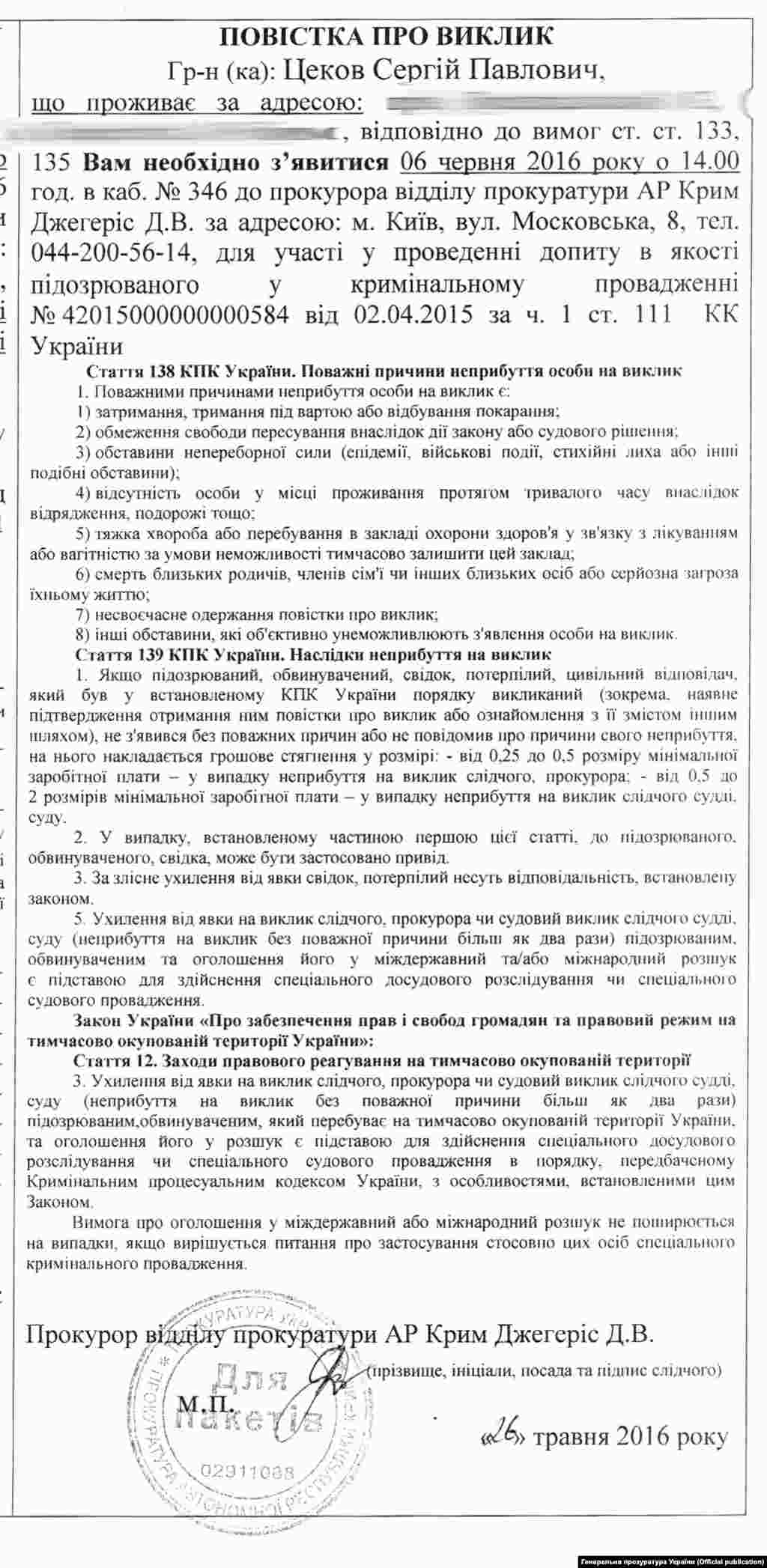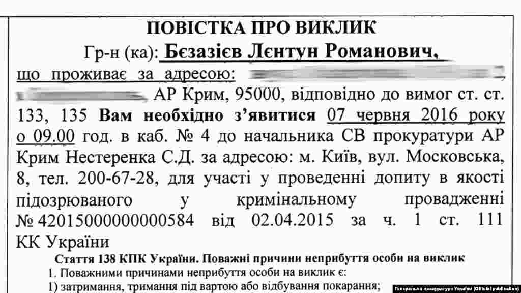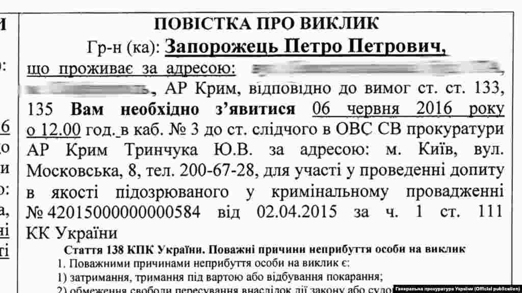 Генпрокуратура Украины опубликовала повестки бывшим и нынешним крымским депутатам и чиновникам