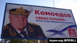 Наиболее креативно подошли к процессу предвыборной агитации севастопольские коммунисты. Впервые они сделали ставку не на продвижение бренда со столетней историей, а на кандидата. Бывшему командующему Черноморского флота и депутату Госдумы Владимиру Комоедову всего 66 лет. Его одутловатое лицо украшает многочисленные билборды, выдержанные в стиле military. Отставной адмирал обещает «Севастополю – жизнь города федерального значения». Штаб кандидата радует избирателей богатством лозунгов, которые почему-то выглядят не совсем по-коммунистически: «Севастополь выбирает Комоедова!», «Дело, а не слово!», «За флот и Севастополь!», «Сила в правде!».