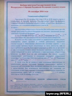 Благоприятно складываются обстоятельства и для возможных манипуляций с количеством избирателей в Крыму. Приглашения на предстоящие выборы приходят, в том числе, и по адресам регистрации крымчан-переселенцев. Читатели Крым.Реалии, которые живут на материковой Украине, передали в редакцию одно из таких приглашений.