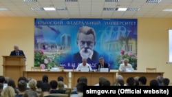 К такому же способу прибегли и в подконтрольном России горсовете Симферополя. Пресс-служба ведомства сообщает о встрече главы горсовета Виктора Агеева с активом Крымского федерального университета им. Вернадского при участии кандидата в депутаты Госдумы Владимира Константинова, который представлен здесь как глава парламента.