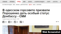 Некоторые СМИ сообщили, что якобы Одесса требует от президента Петра Порошенко предоставить Донбассу особый статус. Такое обращение вроде бы отправили депутаты Одесского горсовета. Сами же депутаты группы «Порто-франко» такую информацию отрицают, а фото с «заседания» ‒ это фотографии полугодовой давности.