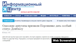 «Депутатская группа Одесского городского совета «За Порто-франко» обратилась к президенту Украины с призывом выполнить политическую часть Минских соглашений и предоставить отдельным районам Донецкой и Луганской областей особый статус».
