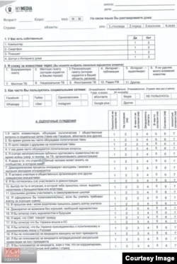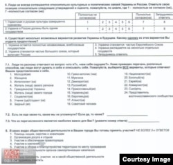 Украинская детская писательница, педагог Лариса Ницой обратила внимание на то, что опросник был на русском языке, и в нем были такие вопросы: «Я бы хотел (а), чтоб Украина присоединилась к политическому и экономическому союзу с Россией»; «Я бы не голосовал (а) за кандидата-женщину на пост президента»; «Украинская и русская культуры совершенно одинаковы»; «Украина и Россия должны быть одним государством»; «Украина становится частью большого союза, включающего Россию»; «Украина распадается на несколько отдельных государств» и другие.