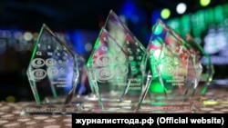 Премию «Журналист года» в аннексированном Крыму вручили уже в третий раз. Журналистов награждал лично подконтрольный Кремлю глава полуострова Сергей Аксенов. Лучшим корреспондентом назвали собкора «России 24» Ольгу Армякову. «Приехав с материка, я действительно верю в то, о чем говорю. Оно не противоречит моим внутренним взглядам, убеждениям», – заявила при награждении Армякова. После аннексии российские центральные каналы открывали на полуострове корпункты – именно там сейчас трудятся некоторые крымские журналисты. Центральные украинские каналы прекратили работать в Крыму, а местные «Черноморка» и ATR переехали на материковую часть Украины. На базе гостелерадиокомпании «Крым» работает «Первый крымский». Член жюри фестиваля Александр Акшатин рассказал, по каким критериям отбирали лучший журналистский материал – «с идеальной объективностью, правильно, лаконично, правдиво и четко». В номинации «Журналистское расследование года», к примеру, победил материал Натальи Дремовой из газеты «Аргументы и факты» – о том, что жительница Германии родит ребенка в Крыму, чтобы защитить его. Подконтрольный России глава Крыма заявил, что журналисты – главные помощники власти, и чиновники работают с ними «в одной команде».