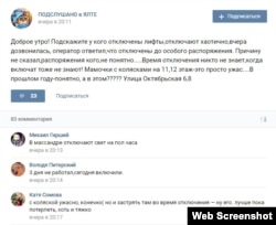 «Я наблюдал, что аварии происходят там, где нет объектов жизнеобеспечения. Аварийная ситуация действует как-то избирательно. Электричество было включено в 18.59. Я звонил товарищу, он живет в районе Буденного, через полчаса, как у нас включили свет – у него выключили и тоже также избирательно – где котельная – там нет аварии, а в других домах есть. Странная какая-то аварийная ситуация», – цитирует своего читателя портал Керчь.FM.