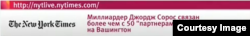 Утверждение, что статья опубликована в The New York Times, не соответствует действительности. Но правая пресса продолжает твердить именно это: во-первых, такая ссылка звучит солиднее, во-вторых, читатель-либерал должен при этом подумать: если уж The New York Times разоблачает Сороса, значит, так оно и есть.