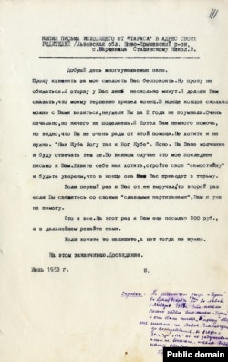 МГБ отслеживает и личную переписку «Тараса». Так, из писем Богдана Сташинского к родителям видно, что он убеждает их не поддерживать «самостийну» и подполье. Иначе, как пишет Сташинский, он уже второй раз не сможет спасти родных от «тюрьмы».