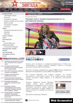 Сайт российского канала «Звезда» в среду сообщил, что Украину якобы могут отстранить от проведения «Евровидения» в Киеве, если организаторы не решат проблему участия в конкурсе российской певицы Юлии Самойловой. Ранее в СБУ сообщили о запрете участнице песенного конкурса от России въезжать в Украину в течение трех лет за нарушение украинского законодательства: 27 июня 2015 года она выступила в аннексированном Крыму.