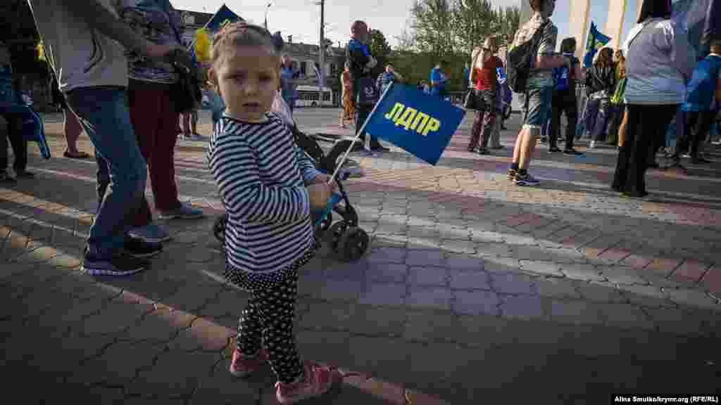 На площади Ленина 3 мая в Симферополе российская партия ЛДПР организовала агитационный концерт, в котором приняли участие исполнители Алексей Гоман и Катя Лель. Как сообщает корреспондент Крым.Реалии, у сцены принимали обращения граждан к партии и ее главе Владимиру Жириновскому. Крымчанам также привезли макет политика, с которым мог сфотографироваться каждый желающий.