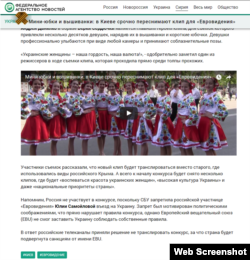 В самой новости издание «РИА-Фан» пишет: «Участники съемок рассказали, что новый клип будет транслироваться вместо старого, в котором использовали виды «российского» Крыма. А до начала конкурса будет снято всего несколько клипов, где будут воспевать «красоту украинских женщин», «высокую культуру Украины», а также «национальные приоритеты страны».