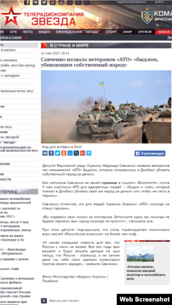 Российские СМИ процитировали якобы заявление народного депутата Украины Надежды Савченко о том, что участники АТО и патриоты возомнили себя героями и цветом нации. Но такого сообщения не было на настоящих страницах Савченко в соцсетях. Это сообщение взяли с фейковой страницы во «Вконтакте».