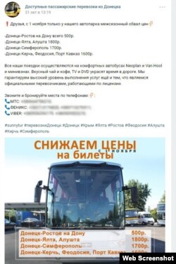 Все столбы, доски объявлений и общественный транспорт в Донецке буквально увешаны пестрыми листовками о частных пассажирских перевозках. Подобная ситуация сложилась и на страницах соцсетей, а также на «городских сайтах», где предлагают международные автобусные поездки по приятным ценам.