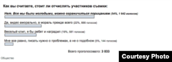 Сайт организовал онлайн-голосование по вопросу: “Стоит ли отчислять участников съемки?”. Более половины из трех тысяч проголосовавших считают, что можно ограничиться порицанием.