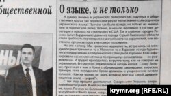 «Крымские известия» разместили колонку главного редактора под заголовком «О языке, и не только». Ирина Иванченко поднимает вопрос особенностей использования государственного языка на материковой Украине: «Украинские лингвисты усиленно придумывают замену русских слов «сооруженными» украинскими аналогами. Всю жизнь в Киеве звучало слово «аэропорт». Теперь он превратился в «летовище». Кому мешало словосочетание «географiчна карта»? По научным меркам не так давно она стала «мапой». Примеры можно продолжать. Кому все это нужно? Почему поляк, француз, немец, русский не бросаются душить иноговорящего собеседника?» По словам автора, личный дневник Тарас Шевченко вел исключительно на русском языке, писал на нем и стихи, и прозу. «А Николай Васильевич Гоголь? И как разорвать на две страны выходца из Харьковской губернии Илью Репина? Или певшего в московской придворной капелле философа Григория Сковороду?» – задается Иванченко вопросом.