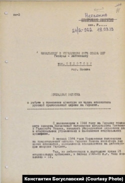 В декабре 2017 года российский историк Андрей Берман опубликовал архивный документ 2-го управления НКГБ СССР, в котором рассказывалось о планах чекистов "подобрать кандидатов" для отправки на Поместный собор РПЦ 1945 года. Этот собор стал первым после знаменитой "встречи Сталина со священниками" и фактической легализации советскими властями Московского патриархата и последним перед окончательной ликвидацией в качестве отдельной структуры Обновленческой церкви, созданной большевиками в 1922 году. В конце документа предписывалось: "Всем агентам из числа епископов, участников предсоборного ноябрьского совещания, по прибытии в Москву, связаться с работниками 5 Отдела 2 Управления НКГБ СССР". Новые сведения о том, как духовенство сотрудничало с Лубянкой (или саботировало это сотрудничество, что тоже случалось), можно найти в докладной записке из архива СБУ в Киеве (архивный шифр – ОГА СБУ ф.16, оп.1, д.562, л.141-152), копию которой предоставил Радио Свобода исследователь украинских архивов Константин Богуславский.