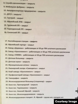 – Я живу очень много лет в Верхнем Уфалее, родился и вырос здесь. И накануне президентских выборов решил сделать подборку: что изменилось в нашем городе за 18 лет правления Владимира Путина. Какие предприятия закрылись? У нас был огромный, градообразующий, ордена Октябрьской революции никелевый комбинат – закрыт. Завод "Металлист" закрыт. Колесо-пружинный, мартеновский цеха закрыты, и пошло-поехало, колбасный цех, молокозавод, мебельная фабрика… Там 37 пунктов, в том числе детская больница, стационар на железной дороге. И те заводы, которые мало-мальски дышат, – я там тоже о них написал – например, на металлургическом заводе работало 5 тысяч человек, а сейчас максимум 500-700 человек.