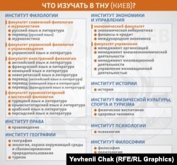 Охредько: Сейчас это гораздо проще, чем было многие годы. Вместе с тем Российская Федерация наращивает давление, ведется громадная работа, чтобы помешать ТНУ. В прошлом году было давление конкретно на учеников в Крыму. Но самое главное – то, что делает Украина. Сейчас уже появился приказ №238, который установил конкретные даты, когда что будет проходить. Ждем на сайте Крым.Реалии простую и понятную инфографику о поступлении.