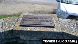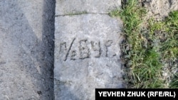 Пирамидка из пушечных ядер, на чугунном основании которой указаны даты обороны Севастополя «1854 – 1855», первая на нашем пути. На другой грани куба надпись «Линия обороны. Сохраняется коллективом ... Ноябрь 1969 г». Выходит, это новодел – восстановленная копия. Что и немудрено – металлические части могли не уцелеть после Второй мировой. Чьим коллективом сохраняется – непонятно, аббревиатуру не разглядеть, более крупно сфотографировать не догадался.