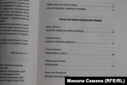 В книгу включены также специальные разделы «Свобода слова», в которых публикуются проза и стихи крымчан, незаконно осужденных российской властью. В третьем выпуске антологии публикуются проза Сервера Мустафаева «Земаневий юсуф медресеси», и стихи Вадима Сирука «Палаючі серця». В книге представлены стихи крымскотатарских поэтесс Алие Кендже-Али, Зульбие Саттаровой, Сейрана Ибрагима, Василе Менусмана.