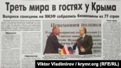 «Крымская правда» в материале «Треть мира в гостях у Крыма» пишет про Ялтинский международный экономический форум (ЯМЭФ), который, как подчеркивает издание, «ожидаемо бьет прошлогодние рекорды»: «В первый день его участниками стали более трех тысяч человек. Из них 338 – представители 77 стран. Для сравнения: в 2015 году, когда форум проводился впервые, встретились представители всего 12 государств. Если так пойдет и дальше, у ЯМЭФ появятся шансы стать по-настоящему масштабной бизнес-платформой мирового уровня. Вопреки санкциям, на форум собрались бизнесмены из 77 стран. На сей раз участники форума избежали долгой раскачки и начали заключать соглашения сразу после старта. В первые часы были подписаны три инвестиционных соглашения на общую сумму более 2 млрд рублей и четыре соглашения о межрегиональном сотрудничестве. В частности, главой Крыма Сергеем Аксеновым было подписано инвестиционное соглашение о строительстве агропромышленного комбината площадью 20 тысяч квадратных метров. Было подписано соглашение о строительстве в Красногвардейском районе Крыма предприятия по лиофилизации продукции на территории пищевого производственного парка «Крымское золото».