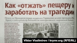 «Крымский телеграф» рассказывает о ситуации вокруг Мраморной пещеры, на которую, по данным газеты, «позарилось Управление делами президента России в Крыму». «Несколько дней назад крымский спелеолог Александр Козлов, которому принадлежит ООО «Центр спелеотуризма Оникс-тур», которое, в свою очередь, с начала 90-х годов прошлого века занимается коммерческим использованием и исследованием знаменитой Мраморной пещеры (в частности, фирма оборудовала пещеру для туристов, сделав вполне достойный объект), сообщил, что утром 12 апреля некие неизвестные люди в камуфляже перекрыли единственную дорогу к пещере, запретив проезд машинам с туристами. Как выяснилось позже, по словам Козлова, попытка блокировать проезд к достопримечательности была делом представителей Управления делами президента России в Крыму. Но попытка не удалась. К полудню того же дня, после прибытия на место полиции, дорога была разблокирована. Сам Александр Козлов уверен, что дорогу блокировали лесники Крымского природного заповедника под руководством начальника лесной охраны, который выполнял распоряжения директора заповедника Елены Деркач. А та, в свою очередь, подчиняется Олегу Подолько – руководителю Управделами президента России в Крыму», – пишет еженедельник. Деркач заявила, что к произошедшему отношения не имеет. Руководитель Управделами президента России в Крыму Олег Подолько комментировать эту историю вообще отказался. «Даже в 90-х таких хамских наездов не было», – резюмирует ситуацию Козлов.