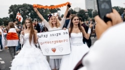 – Кто-то на демонстрации сейчас выходит в свадебных платьях, раскрашенных в бело-красно-белый, в цвета флага.