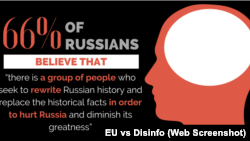 Согласно свежим опросам Всероссийского центра изучения общественного мнения (ВЦИОМ), 66% респондентов согласны с утверждением, «что есть группа людей, которые стремятся переписать российскую историю и подменить факты, чтобы повредить России и уменьшить ее величие», пишет сайт EU vs Disinfo.