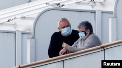 На борту лайнера 24 россиянина. О планах по их эвакуации пока не сообщалось. Журнал Esquire опубликовал рассказ одного из российских пассажиров: "Распорядок нашего дня напоминает сценарий фильма "День сурка" – каждый день похож на другой. Примерно в 7 утра персонал стучит в дверь и приносит завтрак. Обед приносят в три часа, в семь – ужин. С персоналом мы особо не общаемся – все в масках и перчатках, дверь открывается – и сразу закрывается".