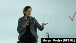 На Львовском медиафоруме историк, эксперт по устойчивости демократии и опасности авторитаризма Энн Эпплбаум выступила с докладом «Сильнее силачей: путь к свободе в сумерках демократии».