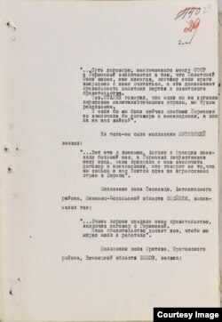 "...Теперь мы спокойны, так как закреплены за колхозами на 10 лет, можно работать и получать по 50 коп. и 2 килограмма хлеба на трудодень. Надежды на освобождение от советской власти при помощи войны ожидать нельзя".