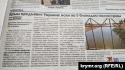 По информации газеты «Комсомольская правда. Крым», полуостров предъявит материковой Украине иски по 5 блокадам региона: водной, энергетической транспортной, банковской и продовольственной. Первый иск на 1,4 триллиона рублей касается последствий от блокирования Северо-Крымского канала, по которому полуостров получал пресную воду из Днепра. По словам подконтрольного России первого вице-спикера Госсовета Крыма Ефима Фикса, иск о водной блокаде планируют подать в суд до конца года. Параллельно идет работа по подтверждению размера ущерба, причиненного экономике и жителям полуострова в результате вододефицита и других действий украинских властей. «В судебные органы будем подавать (иски) по мере готовности, – сказал Фикс в комментарии КП-Крым. – Сначала по водной блокаде. Цифру уже назвали, это порядка 1,4 триллиона рублей».